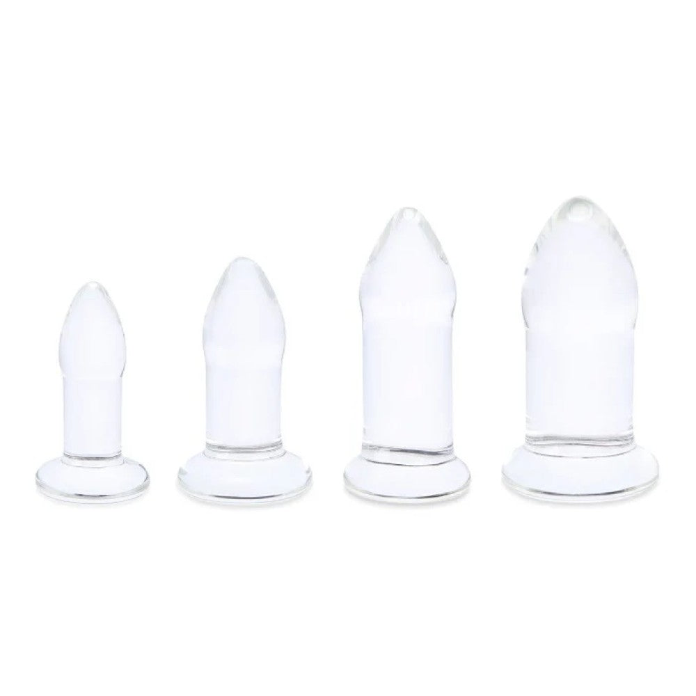 The Glass Anal Dilators Set consists of 4 small-to-large sizes, body-safe glass anal plugs explicitly designed to open up and relax the anal sphincter and rectum- a process that is often referred to as anal training.