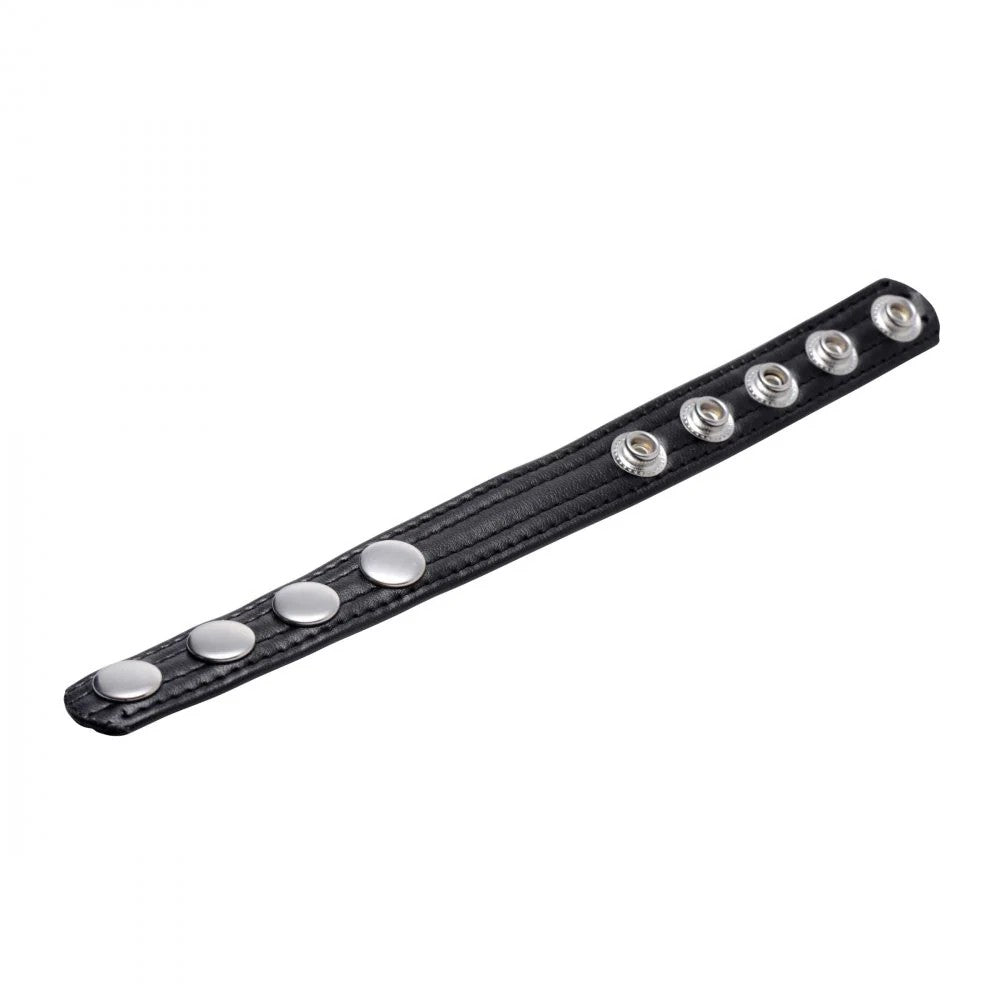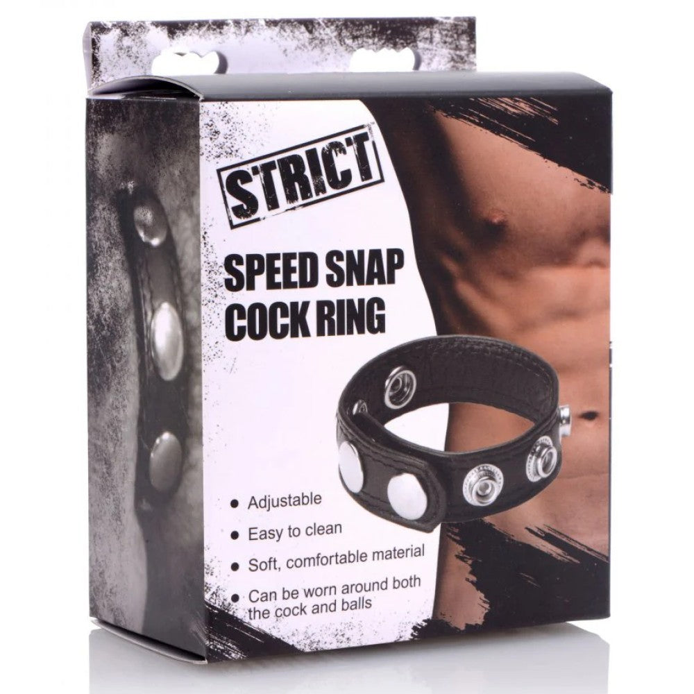 Maintain a harder, stronger, and more sensitive erection when you wrap this snap-on cock ring around your cock and balls! Restrict blood flow by tightening this comfortable and attractive strap around your package, creating a bulging hard-on that will last through your most tantalizing endeavours. Solo or with a partner, you will love the enhanced sensation of every stroke, thrust, suck, and fuck! When you are ready to ejaculate, just release the snap to quickly and effective remove the cock ring.