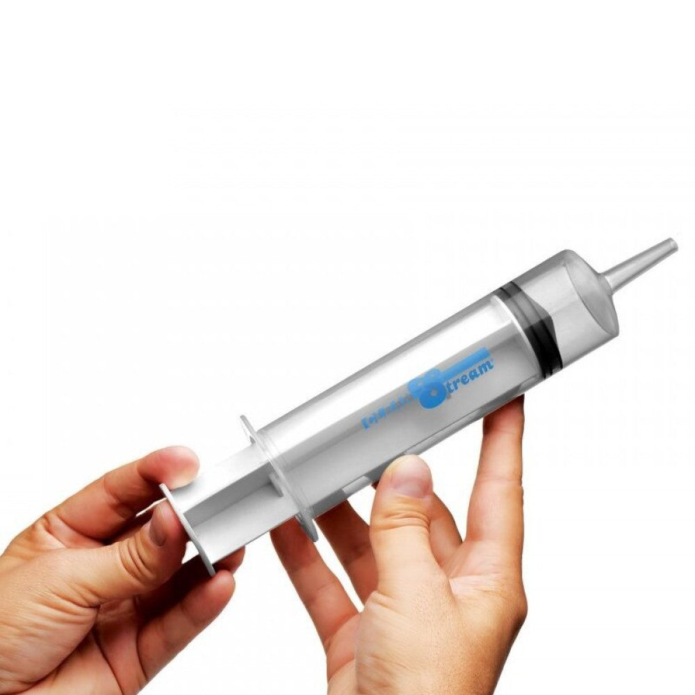 This enema syringe is compatible with both silicone and water-based lubricants and cleans with mild soap and warm water.