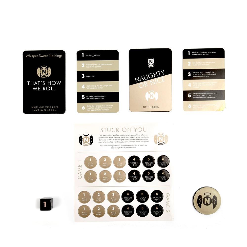 Three unique games packed with Naughty and Nice ideas to make any relationship more spontaneous! The Nice suggestions will help you to create romantic date ideas and tender moments for you both to share, bringing you even closer as a couple. Whilst the Naughty suggestions will add sizzle and spice to your love life, with kinky ideas and erotic surprises. A flip of the poker chip and a roll of the dice will decide when you are Naughty and when you are Nice.