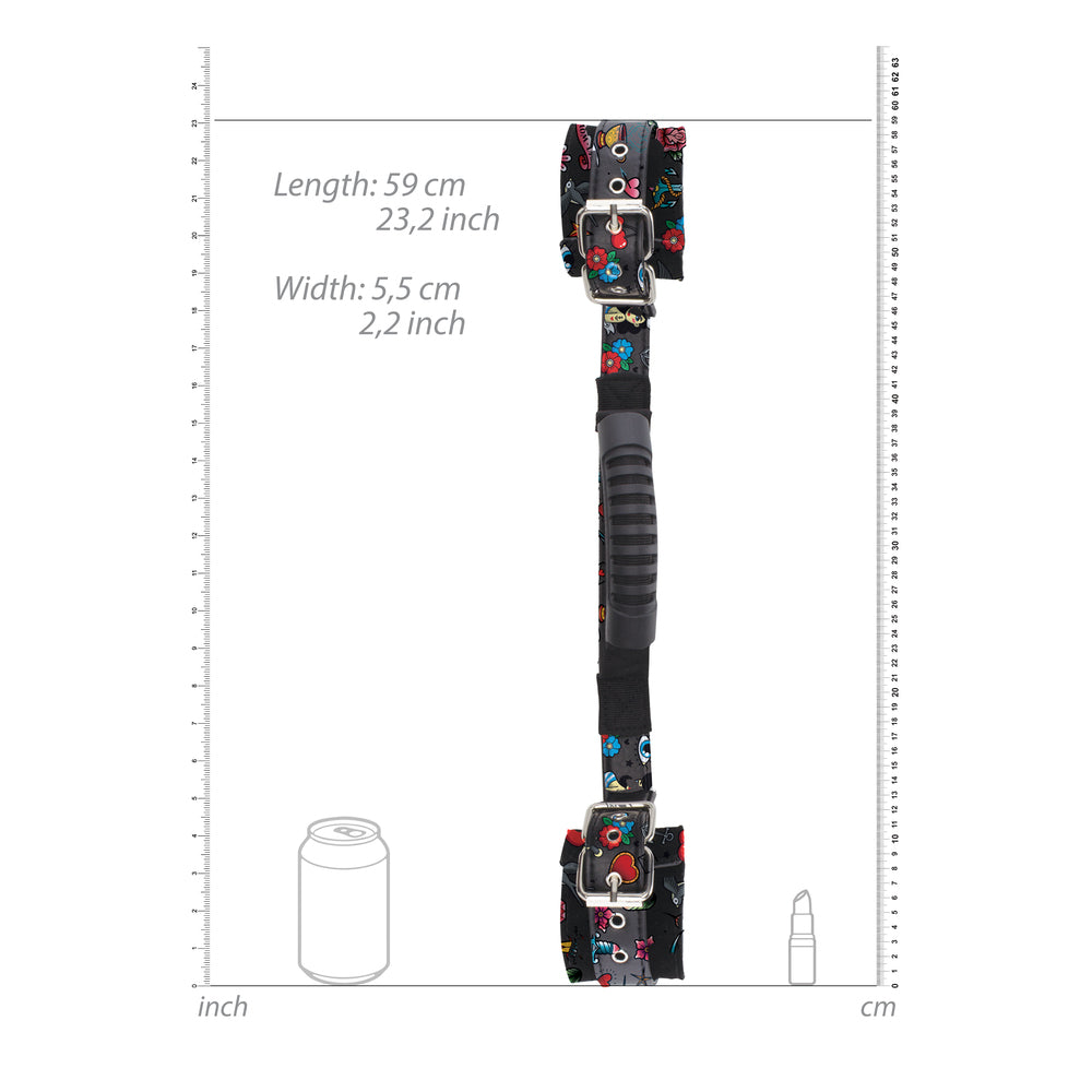 Ouch Old School Tattoo Printed Hand Cuffs With Handle