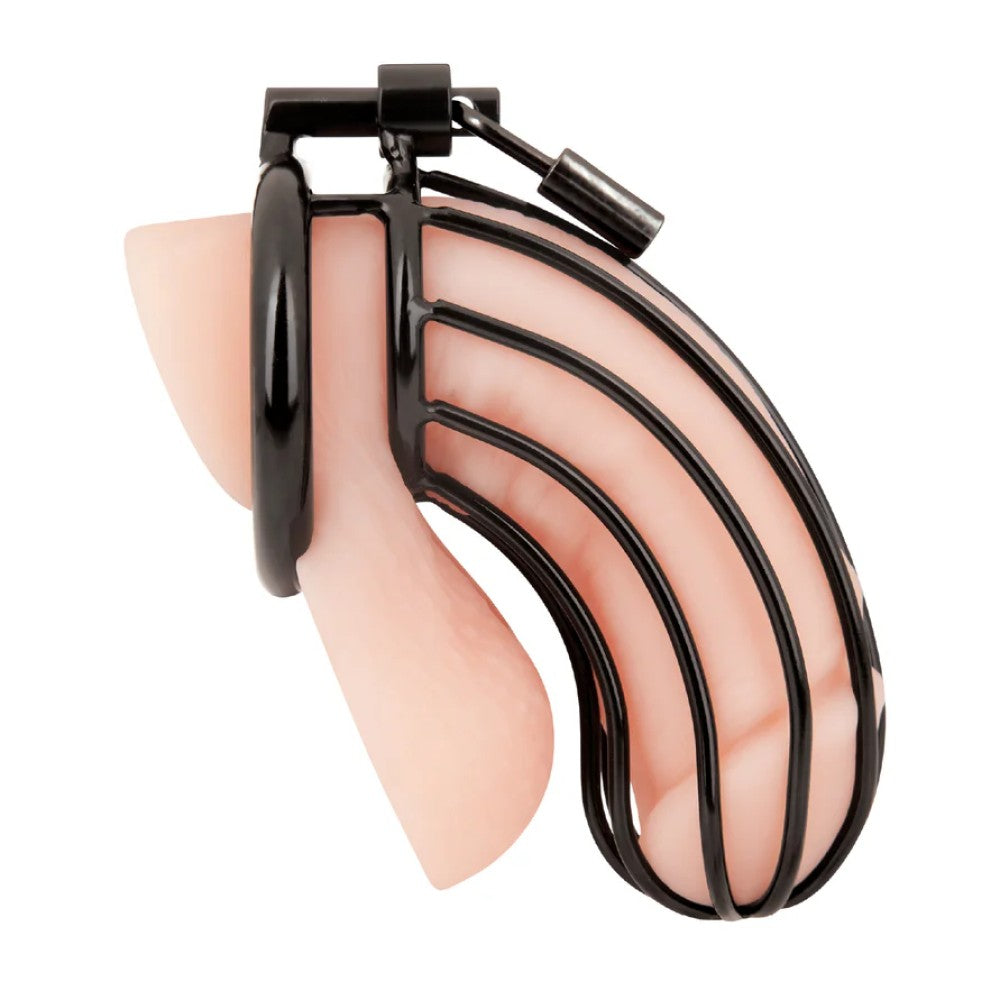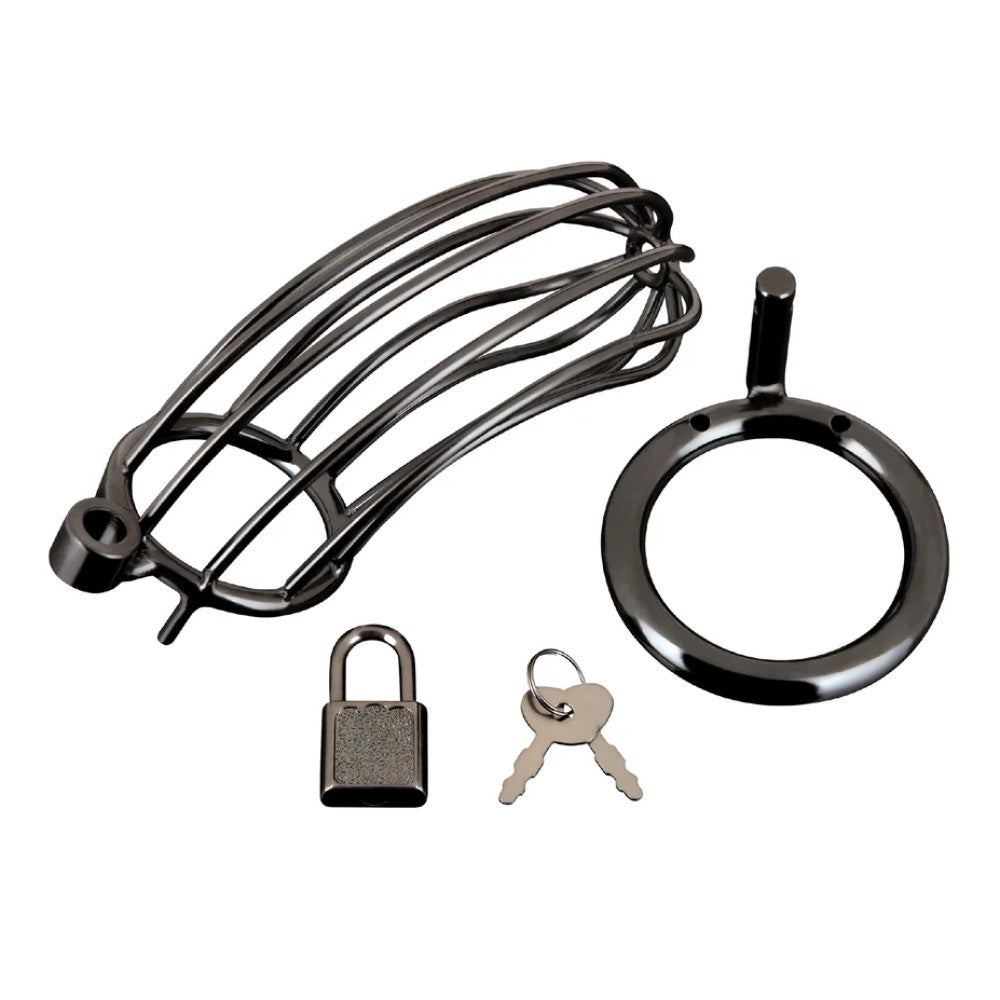 The interlocking cage pieces, guide pins and oval locking pin give total security, while the assortment of size rings and spacers allow for a comfy, customizable fit - so you don't need to sacrifice pleasure for safety!