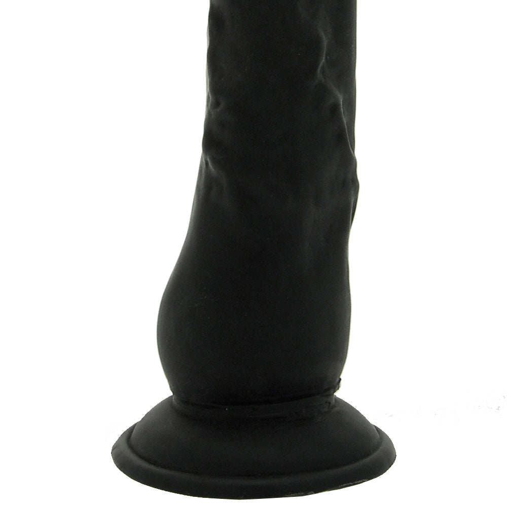 Black dildo in natural look with full head and throbbing veins on a sturdy suction cup. It is extremely flexible and made from slippery material.