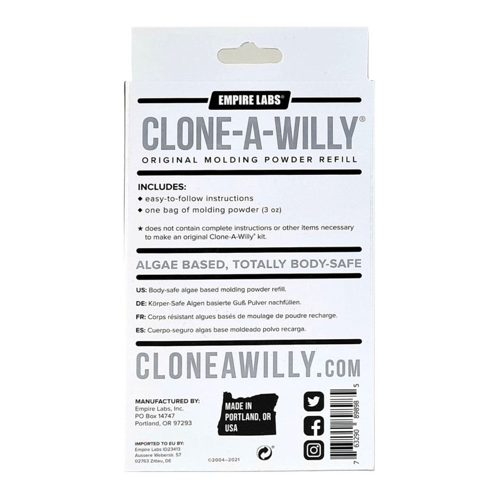One bag of Clone A Willy's 100% body-safe alginate moulding powder. This is also handy if you are a particularly big boy and need more powder to get all of your huge meat moulded for posterity!
