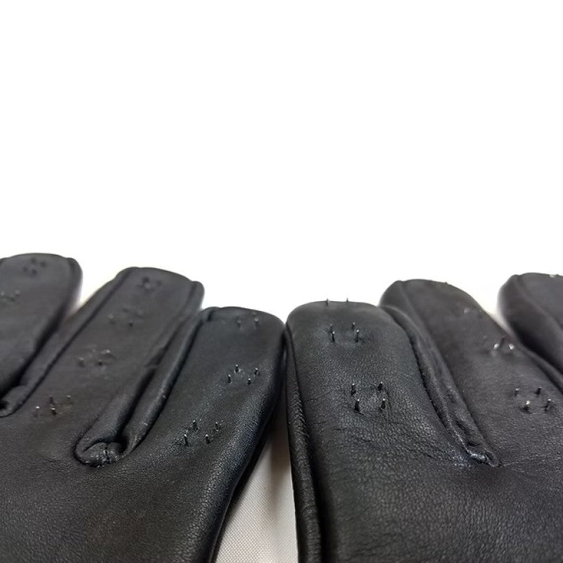 With Prickly Metal Points. Soft, thin, sexy leather gloves with a fierce side: prickly metal points on the palms, fingers, thumb, and fingertips. Each touch and grab will be felt. Great for teasing, scratching, and stimulation.