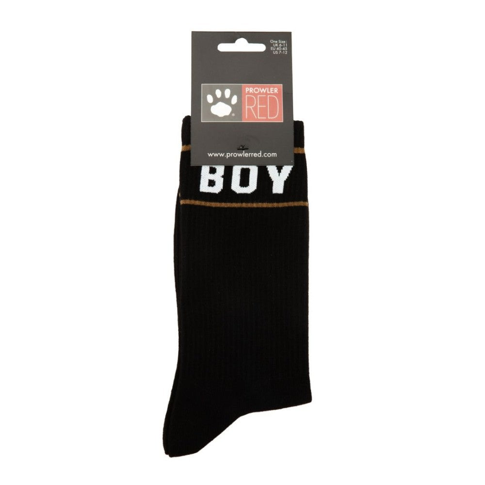 These Prowler Boy Socks are sure to be a top hit with those that know your sexy outgoing personality. Featuring "Boy" on the sock band the classic all-black colourway is sure to match anything in your closet.