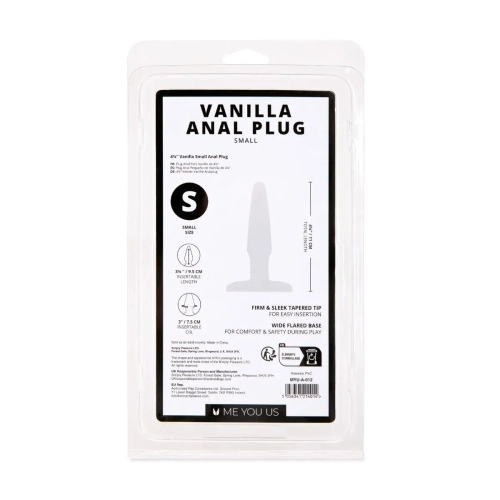 The Me You Us Vanilla Small Anal Plug has a smooth tear-drop shape ideal for first-time insertion, with 3 inches of girth. The tapered body gives a comfortable feeling and flared base holds the toy secure.