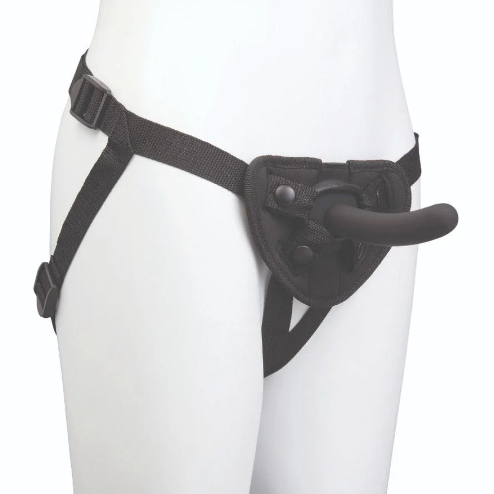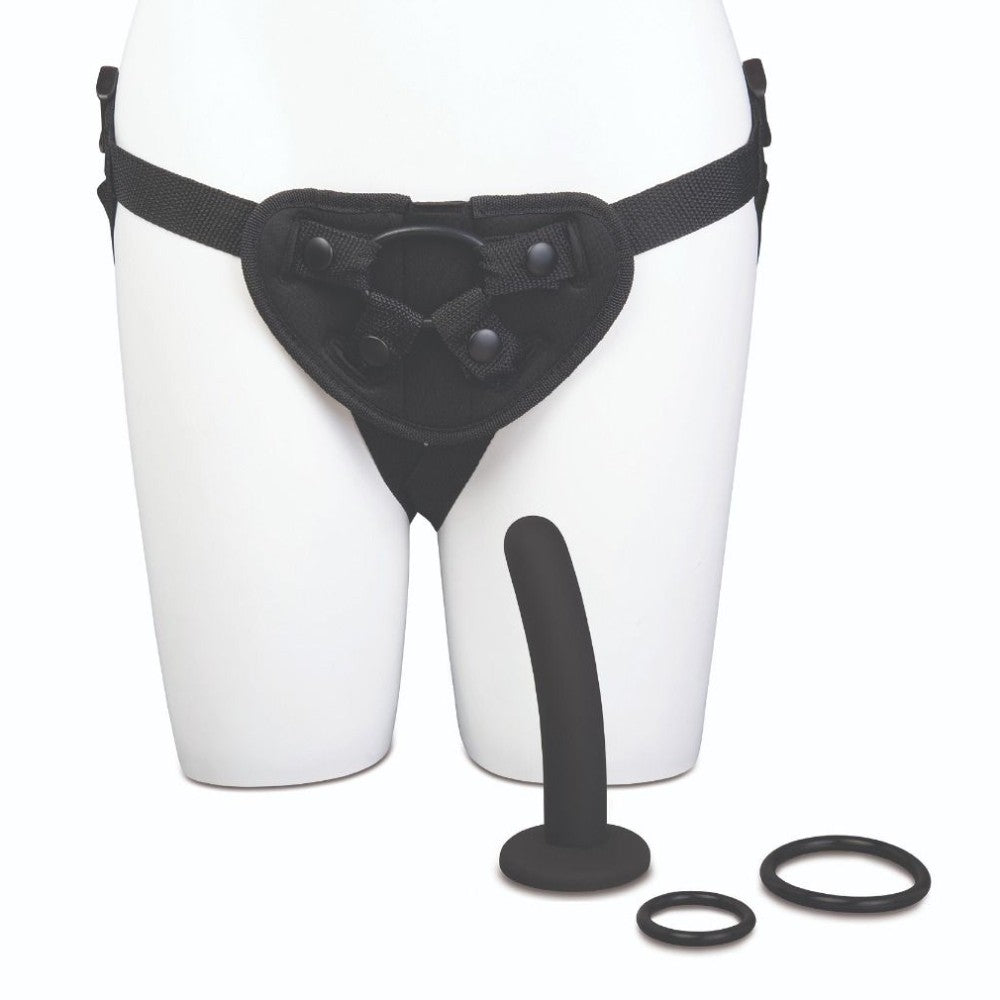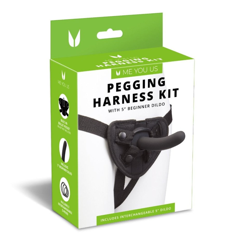 The Me You Us Pegging Harness Kit features a 5 inch beginners dildo with a adjustable strap-on harness.