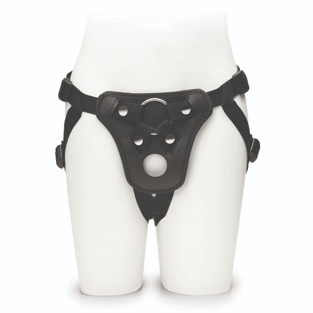 The harness can be used with most dildos with a flat or tapered base for further flexibility, and can be used by both men and women.