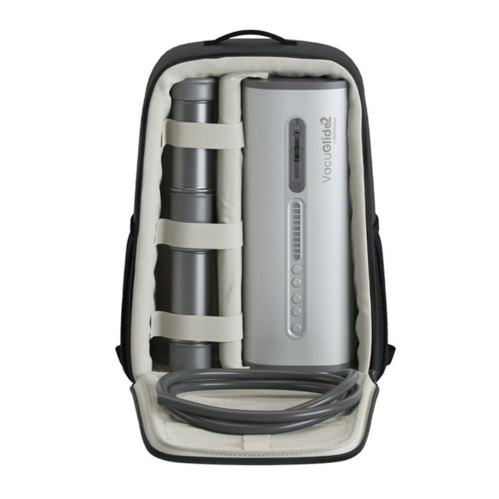 Because we know that discreet storage is important to VacuGlide owners, every VacuGlide comes packed inside of a black backpack with a dedicated space for each component.