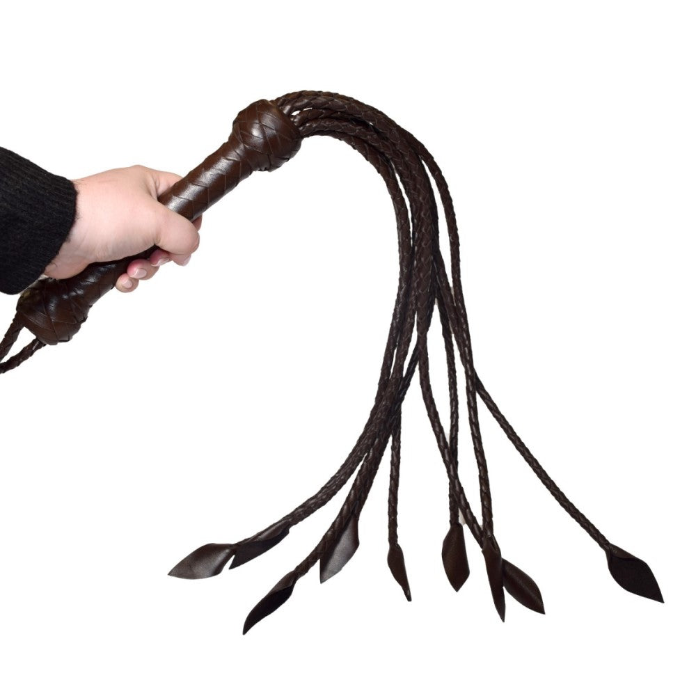 This exquisite flogger is expertly made from high-quality brown leather, featuring a luxurious appearance that is as visually enticing as it is tactilely stimulating.