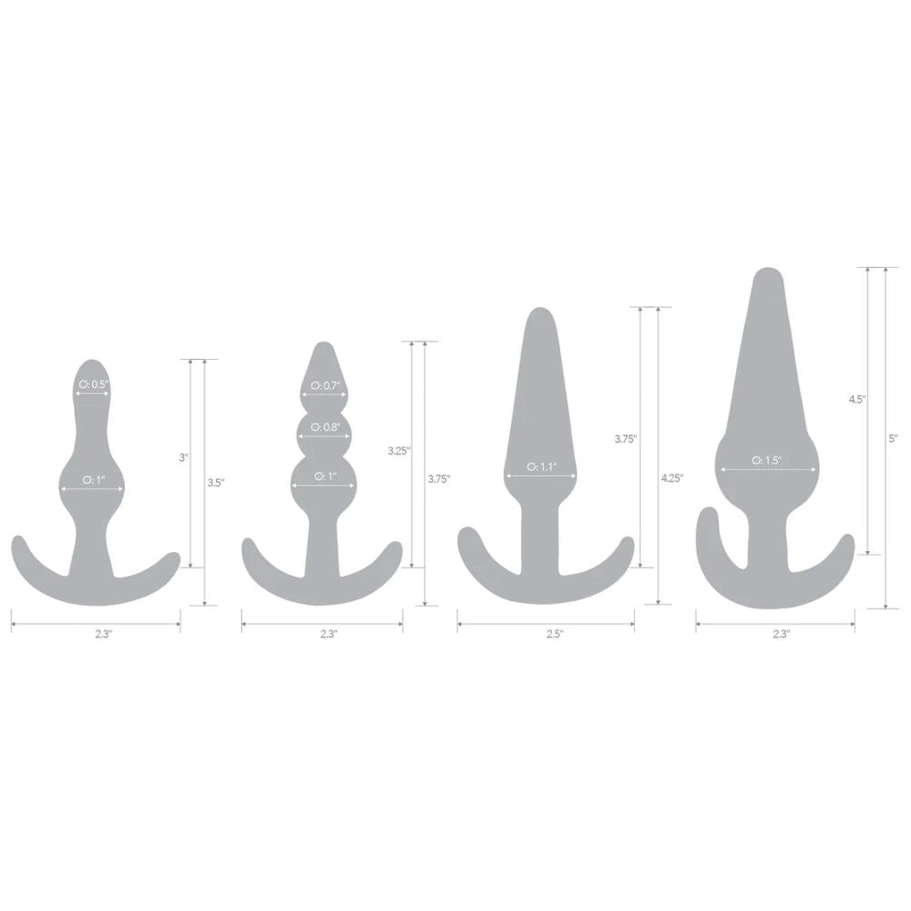 This 4PC Anal Training Set is the ticket to unlocking the potential of backdoor pleasure. With four petite and user-friendly butt plugs that range in size, style and material, you can explore anal play at your own pace with a set designed with your safety in mind. Fun, fearless and ready to go!