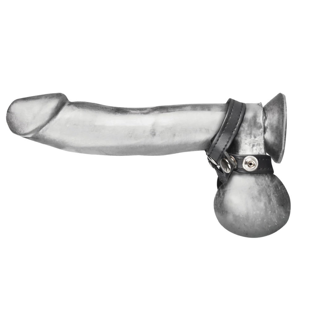 Place each testicle into the divider, one at a time. Wrap the main ring around the scrotum and snap closed. The divider will keep the testicles separated and constricted. Wearers should discontinue use in case of pain or excessive swelling.