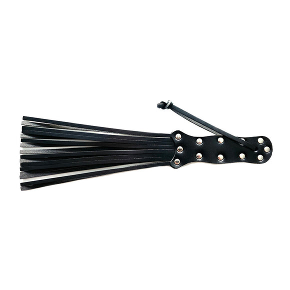 Black one side and burgundy crocodle skin the other with black wrist strap.