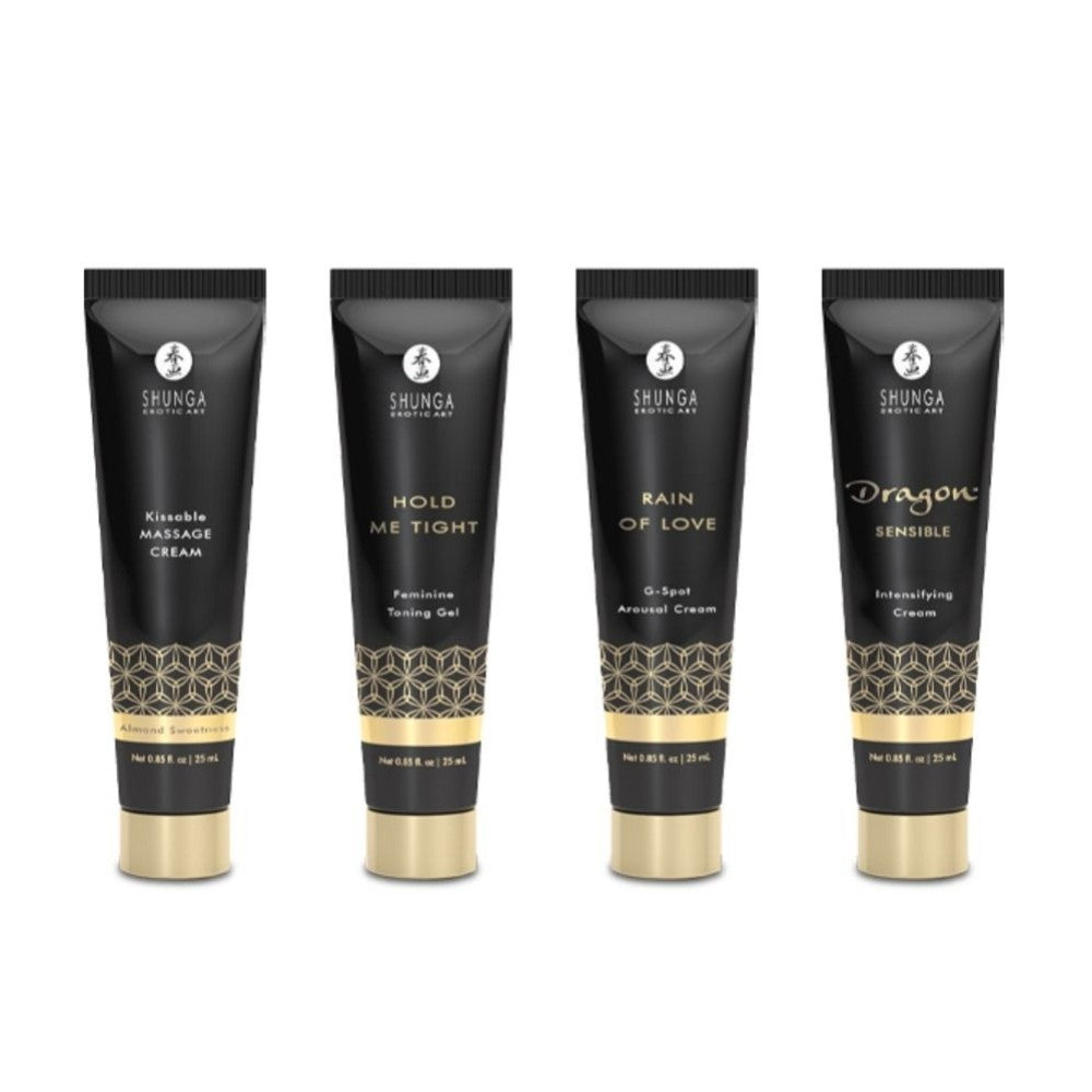 25 Days of Pleasure : Each box reveals a treasure from our collection, carefully selected to awaken your senses and elevate your intimate moments. From delicate massage oils and silky lubricants, to accessories and exciting innovations, every item embodies the essence of SHUNGA—a perfect blend of luxury, sensuality, and passion.