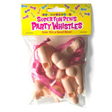 The Super Fun Penis Whistle is a fun way to draw attention to your bachelorette party while traveling or cruising the strip. Each bag has six penis-shaped whistles on a sleek hot-pink lanyard to wear around your neck as the perfect pop of colour and bachelorette party accessory.